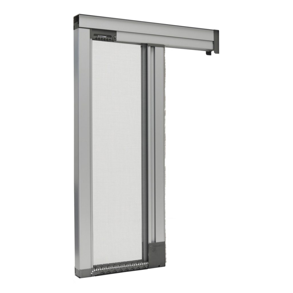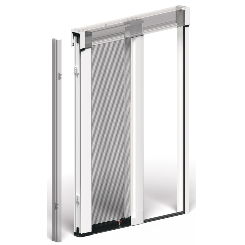 Scenipro è una zanzariera a scorrimento laterale senza guida fissa a pavimento e senza profili